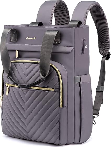 LOVEVOOK Laptop Backpack for Women, 15.6 Inch Work Business Laptop Bag, Wide Top Open Teacher Nurse Bag with USB Port, Waterproof Computer Backpack Purse for travel, Purple-Grey