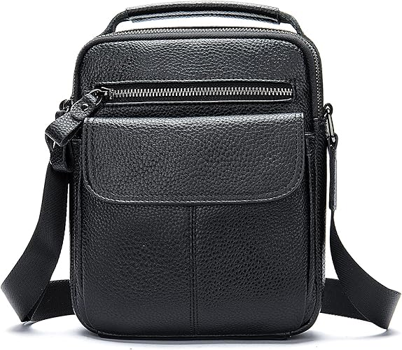 NIUCUNZH Man Purses and Bags Small, Mini Genuine Leather Messenger and Shoulder Bag for Men with lots of Zipper Pockets