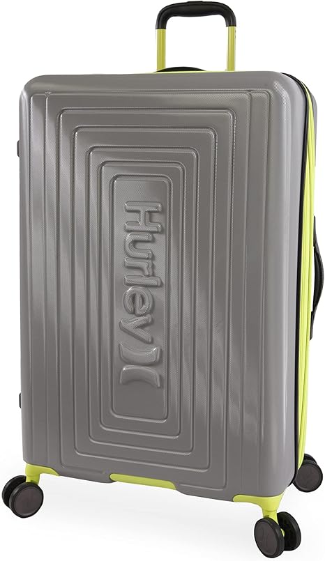Hurley Suki Hardside Spinner Luggage, Light Grey/Neon, 29" Check in