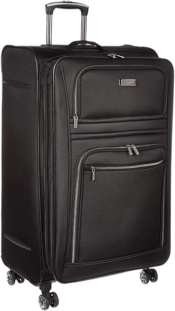 Kenneth Cole REACTION Rugged Roamer Lightweight Softside Expandable 8-Wheel Spinner Luggage, Black, 28-Inch Checked