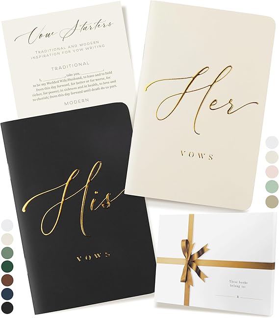 ARTESORI Wedding Vow Book for Her & Him, Soft Touch, Gold Foil Engraving, 28 Lined Pages, Wedding Vow Books His and Hers, Wedding Essentials, Wedding Registry Ideas, His and Hers Gifts [Ivory & Black]