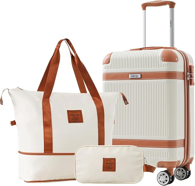 Merax Carry On Luggage Lightweight Suitcase Spinner Wheel TSA Lock, White, 20 Inch Set