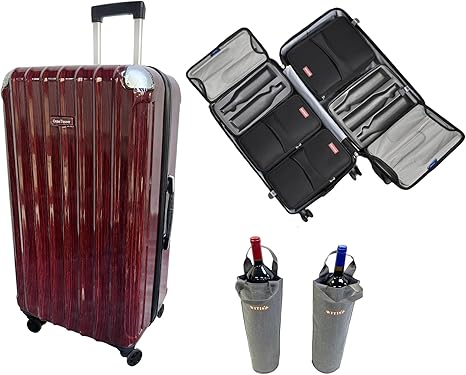 Wine Suitcase for Airplanes 12 Bottle, Wine Suitcase with TSA Lock, Insulated Insert Bag with Ice Pack Pocket, Luggage for Airplane Travel for Lover Professional Gift (Burgundy)