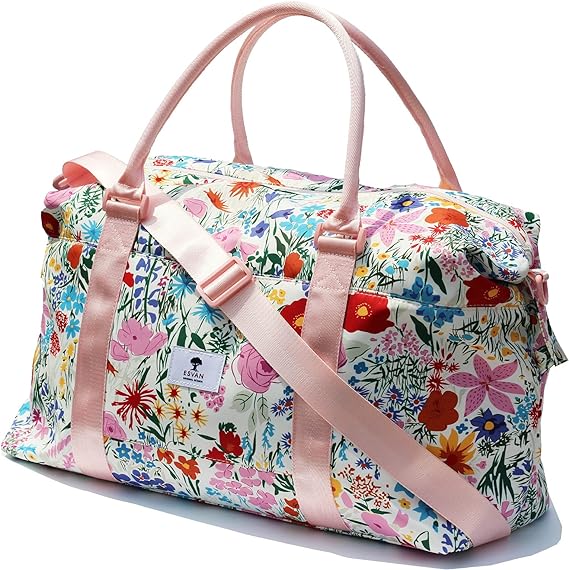 ESVAN Travel Tote Duffel Gym Bag, Weekender Overnight Carry-on Tote Crossbody Bag with Wet Pocket and Trolley Sleeve Upgraded