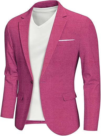 MY'S Men's Slim Fit One Button Linen Suit Blazer, Casual Sports Jacket, Lightweight Business Daily Coat.