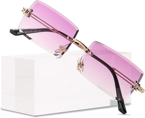 Rimless Rectangle Sunglasses Women Men Trendy Square Y2K Glasses Retro Frameless Eyewear Gradient Lens