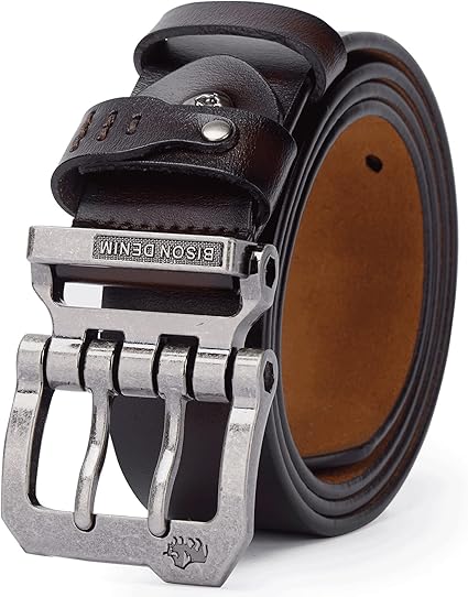 BISON DENIM Men's Belts Leather Dress Genuine Leather Classic Heavy Duty Buckle Belt Casual for Jeans