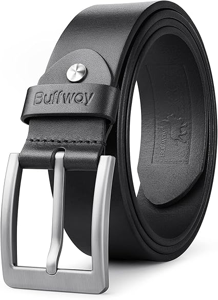 Buffway Minimalist 1.5" Full Grain Leather Belts for Men with Metal Buckle, Heavy Duty Mens Casual Belts in Gift Box