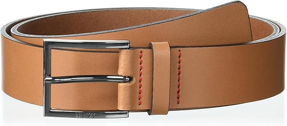 HUGO mens Dressy Leather Belt With Gun Metal Hardware