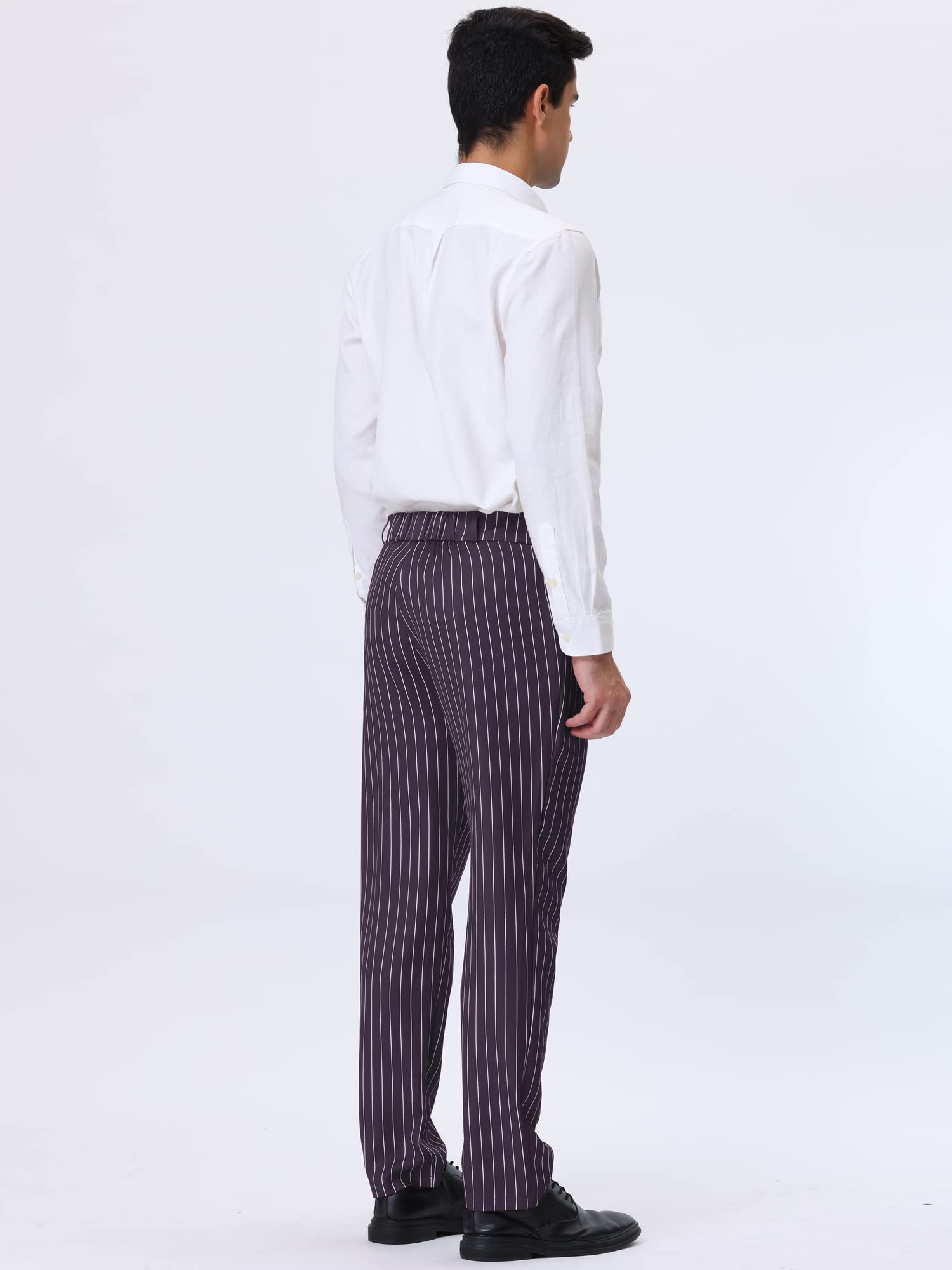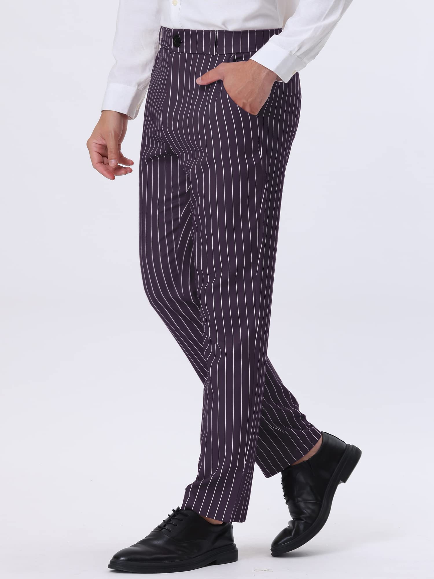 Lars Amadeus Men's Striped Dress Pants Straight Fit Color Block Business Stripe Trousers 32 Purple White