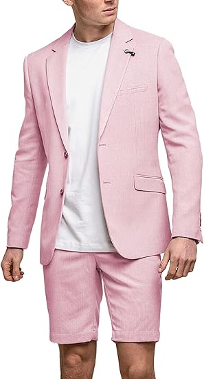 Linen 2 Piece Suit Summer Suit with Short Pants Beach Wedding Suit Set for Men Business Suit Party Prom Tuxedos