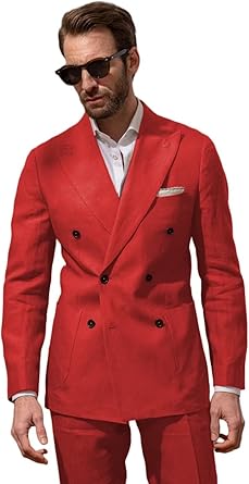 Linen Men's Suits Double Breasetd Summer Wedding Groom Tuxedos Wide Peak Lapel Business Formal Suits HZH19