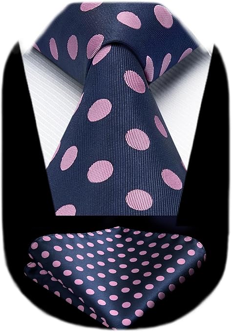 HISDERN Polka Dot Ties for Men Classic Silk Ties and Pocket Square Formal Business Necktie Handkerchief Wedding Party