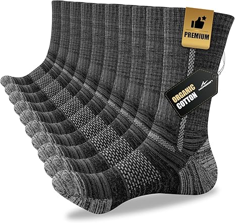 Men's Cotton Crew Work Socks, 5 Pairs Cushioned Boot Socks, Moisture Wicking Athletic Socks for Hiking Sports Running