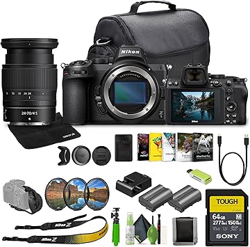 Nikon Z5 Mirrorless Full Frame Camera with 24-70mm f/4 Lens Kit + EN-EL15C Battery + Memory Card Wallet + 64GB SF-M Tough Series Memory Card + Photo Editing Software + More (Renewed)