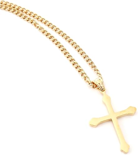 24K Gold Chain Small Cross Pendant Necklace Solid Clasp for Women, Men, Wife, Husband, Thin for Charms Miami Cuban Link Diamond Cut Religious Edge
