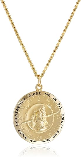 Amazon Essentials Men's 14k Gold-Filled Round Saint Christopher Compass Medal with Stainless Steel Chain (previously Amazon Collection)