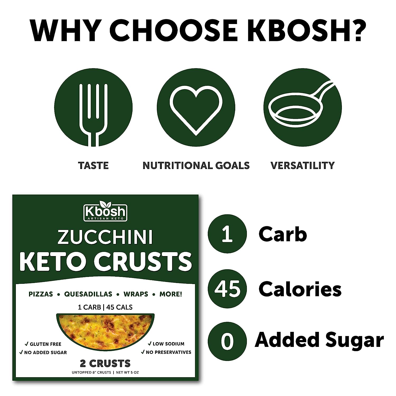 • LOW CARB, LOW CALORIE KETO FOOD: With only 1 carb and 40-45 calories per serving, KBosh crusts make it easy to eat healthy without sacrificing great taste!