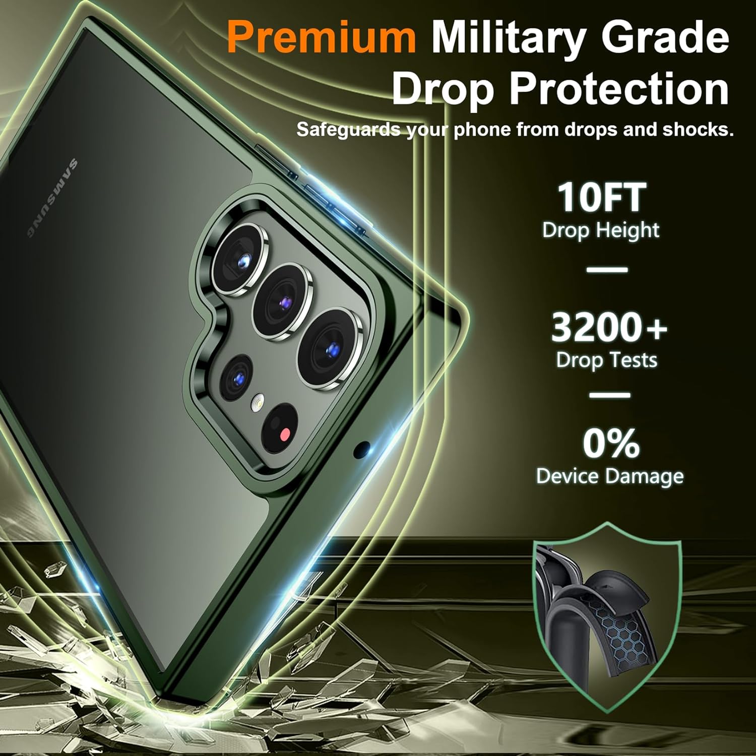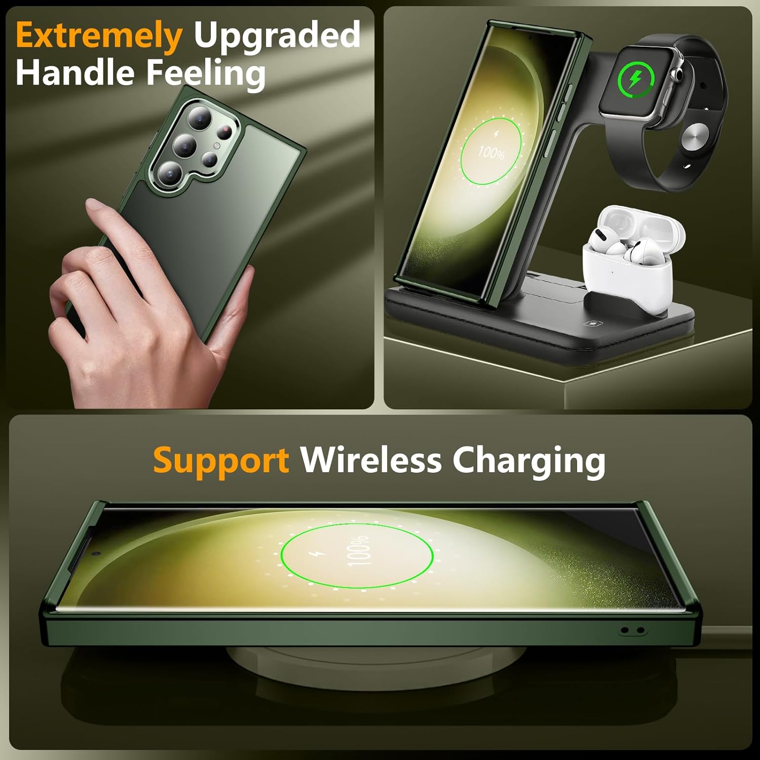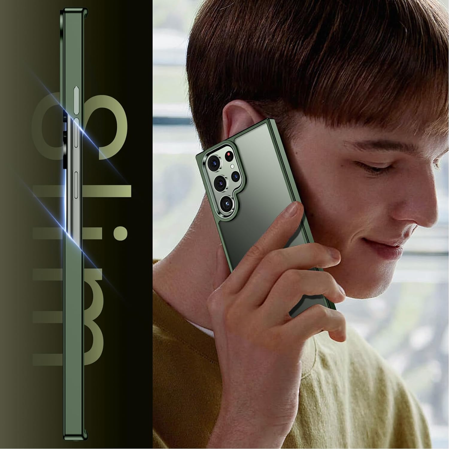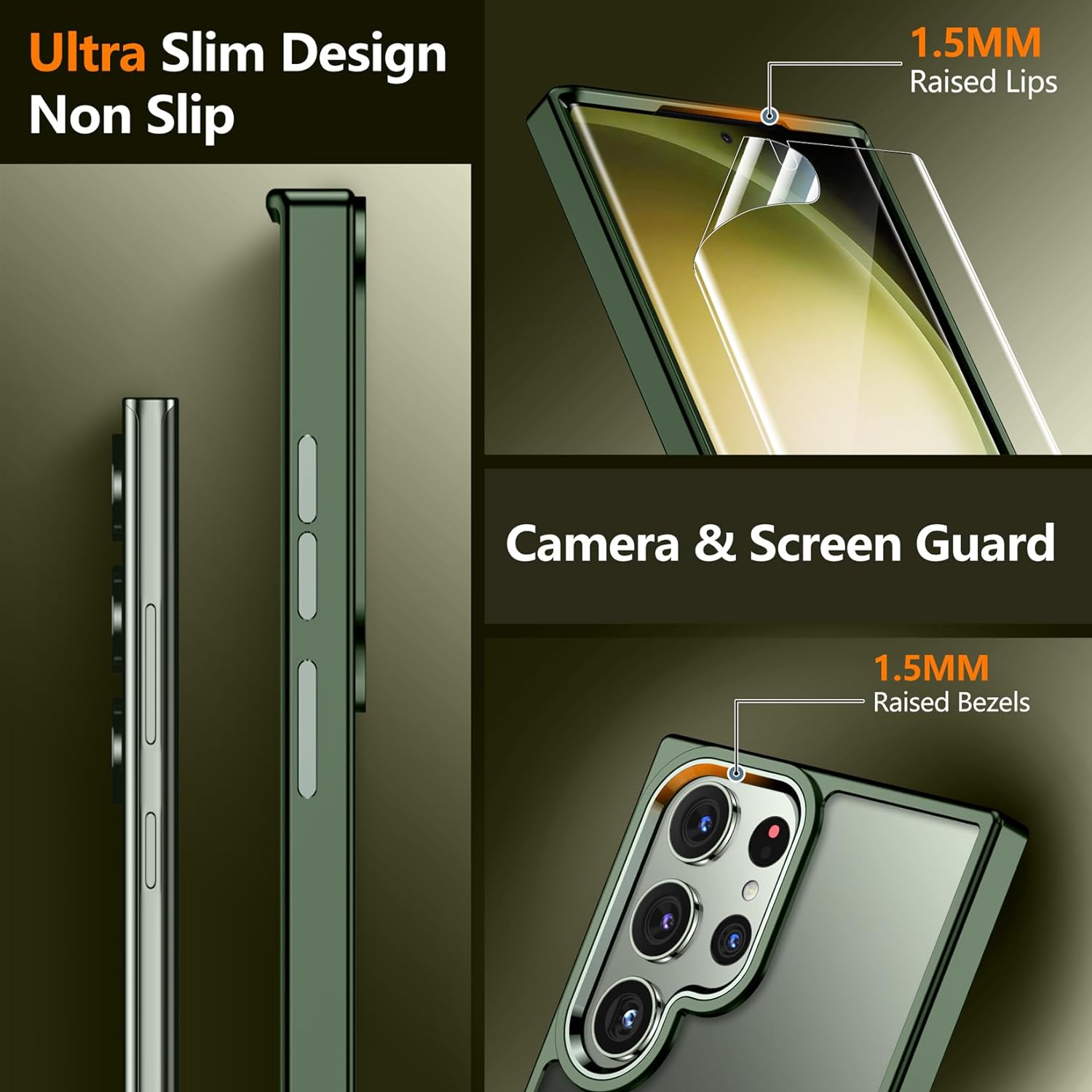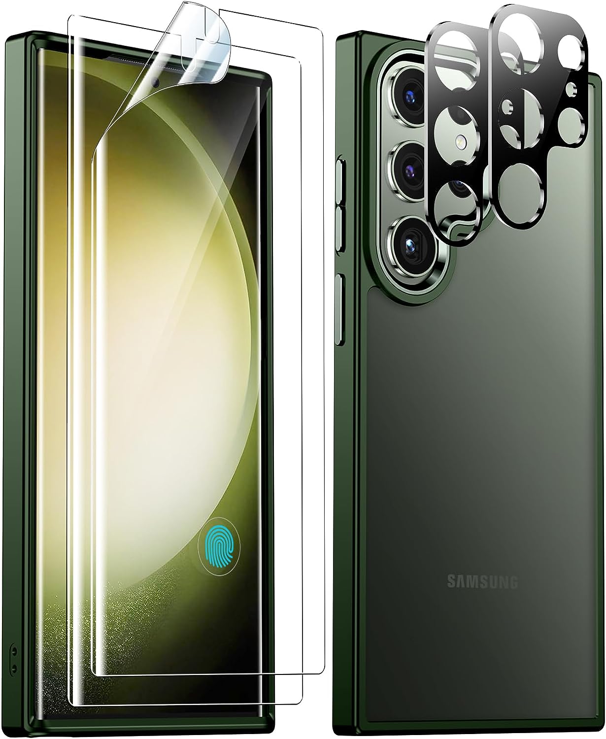 SPIDERCASE for Samsung Galaxy S23 Ultra Case, with 2 Pcs [Camera Lens Protector+Soft Screen Protector], [Anti-Yellowing] [Military Grade Shockproof] Slim Thin Galaxy S23 Ultra Case 6.8",Matte Green