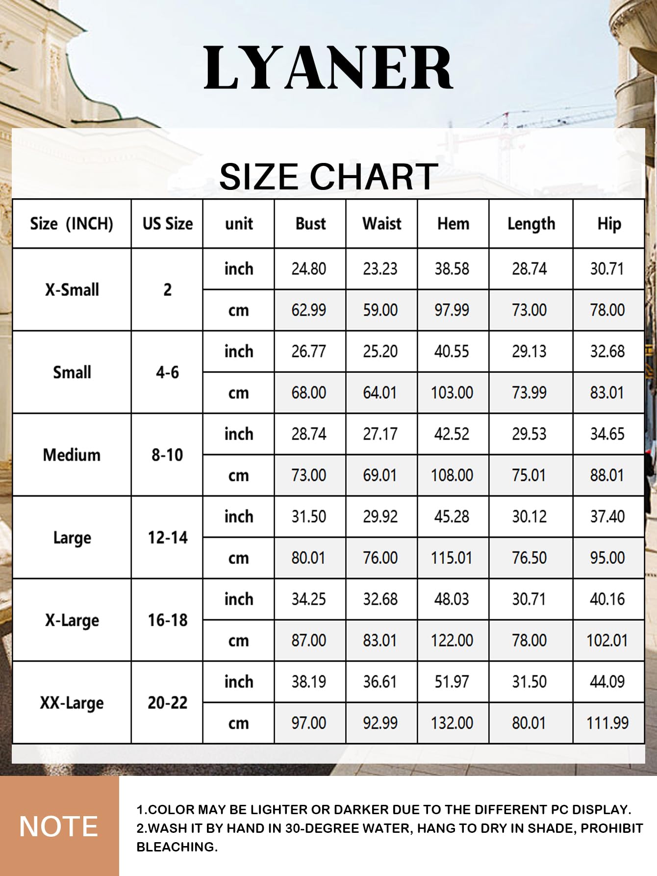 • Please refer to the LYANER Item Description below for Size Details.