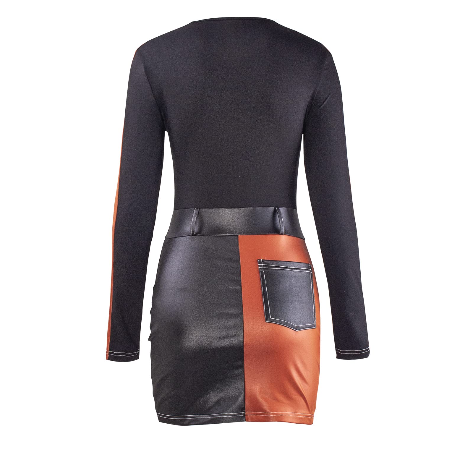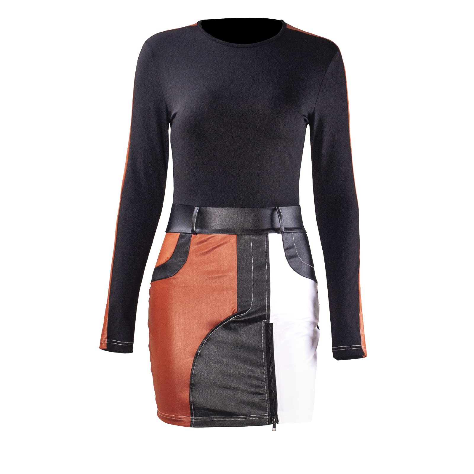 • Features: long sleeve mini dress, crewneck, patchwork dress, color block mini dress for women, sexy zipper dress, high waist with belt loop, backside with pocket. Women sexy long sleeve zipper slit bodycon mini dress