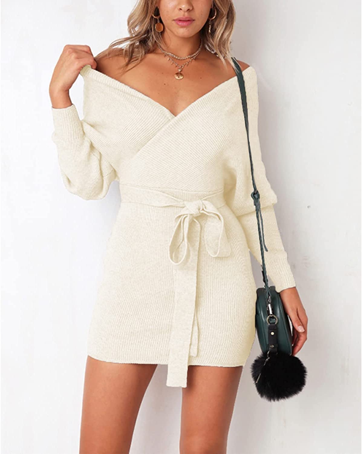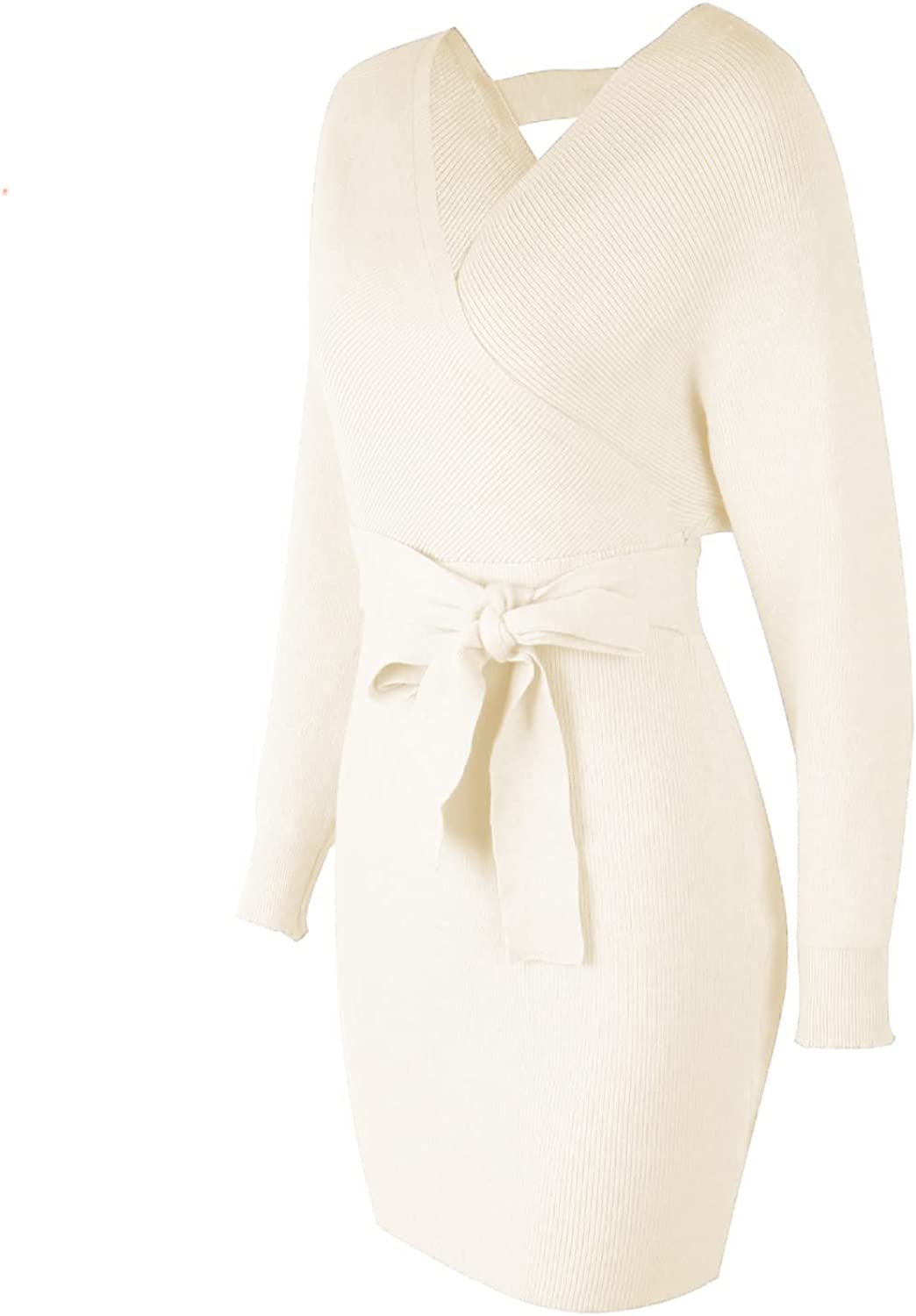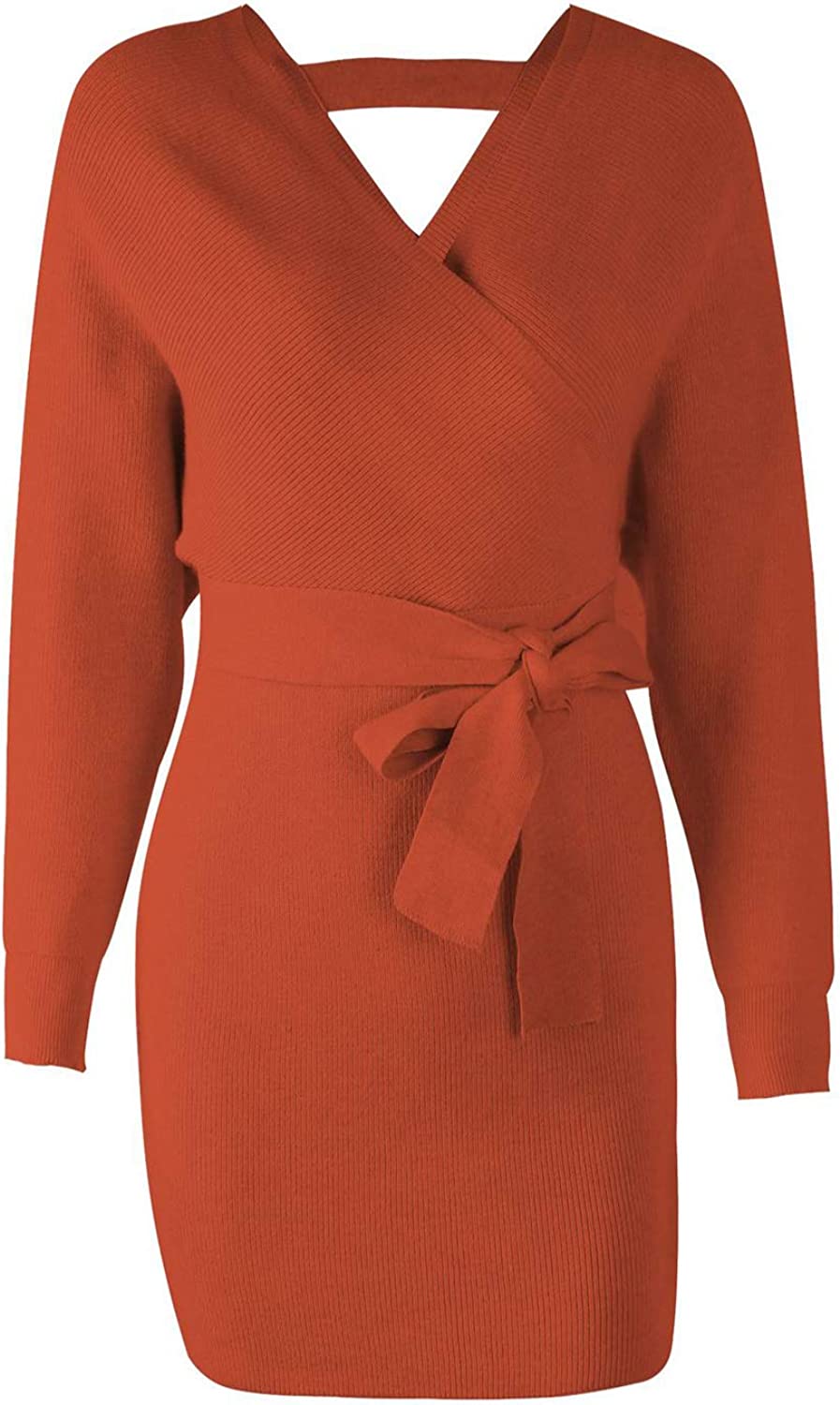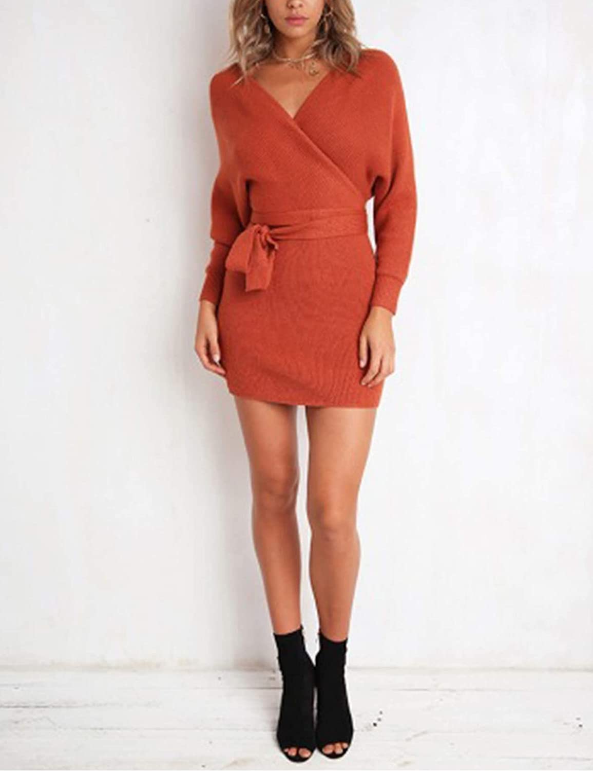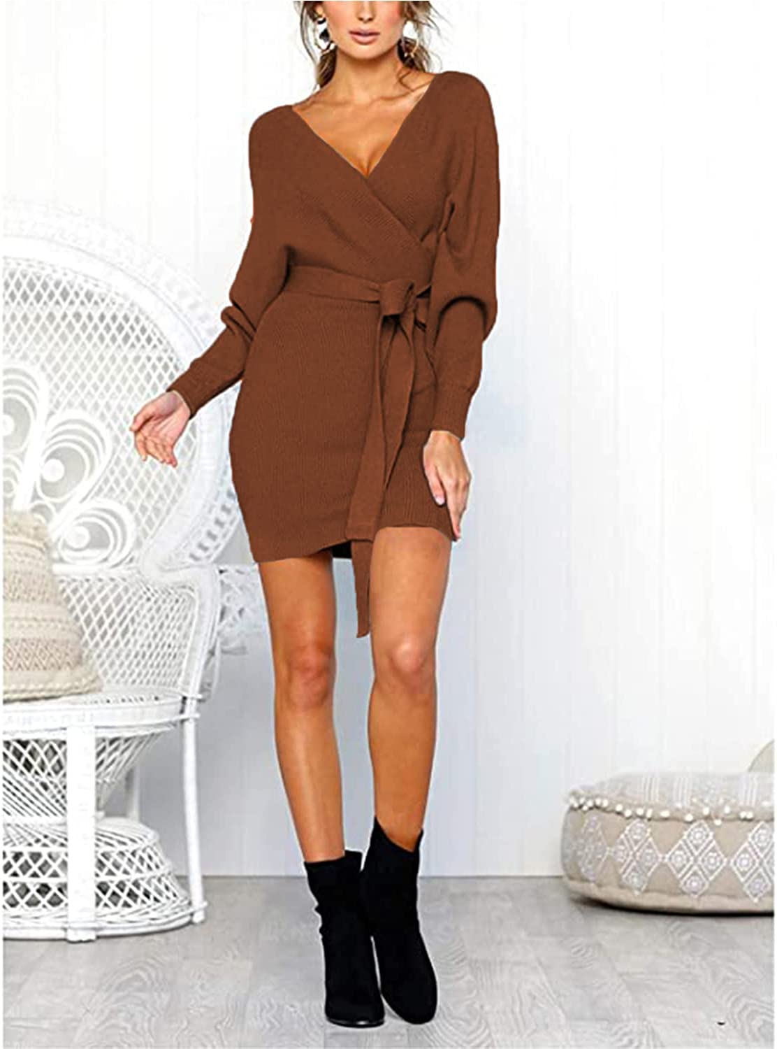 • Long sleeve dresses for women features self-tie waist and mini length, cute and sexy sweater dresses, V neck with batwing sweaters and wrap dress design, ladies and feminine style, suit as a semi formal dresses