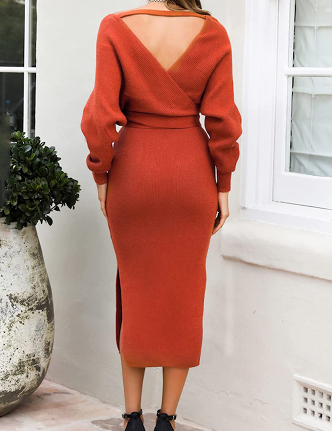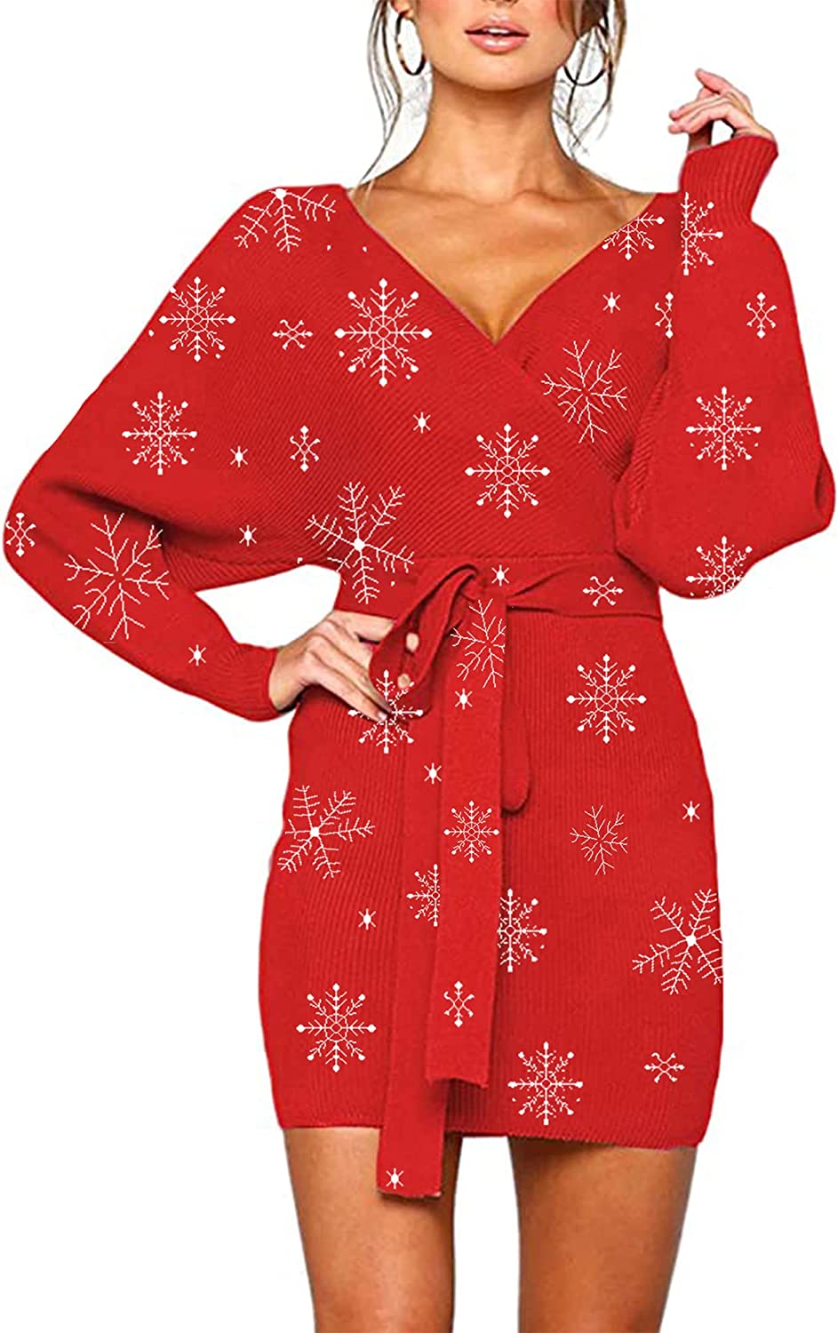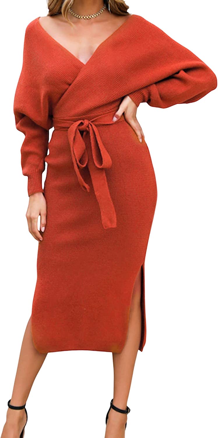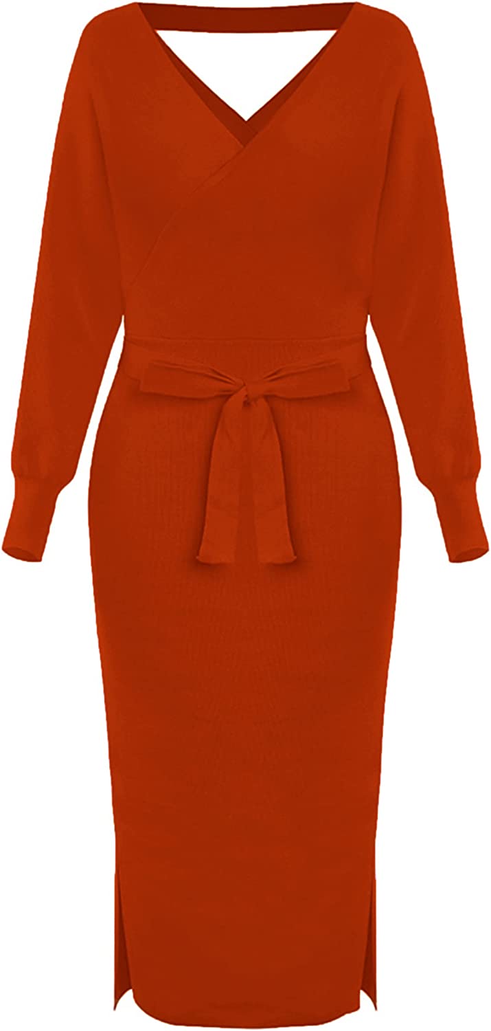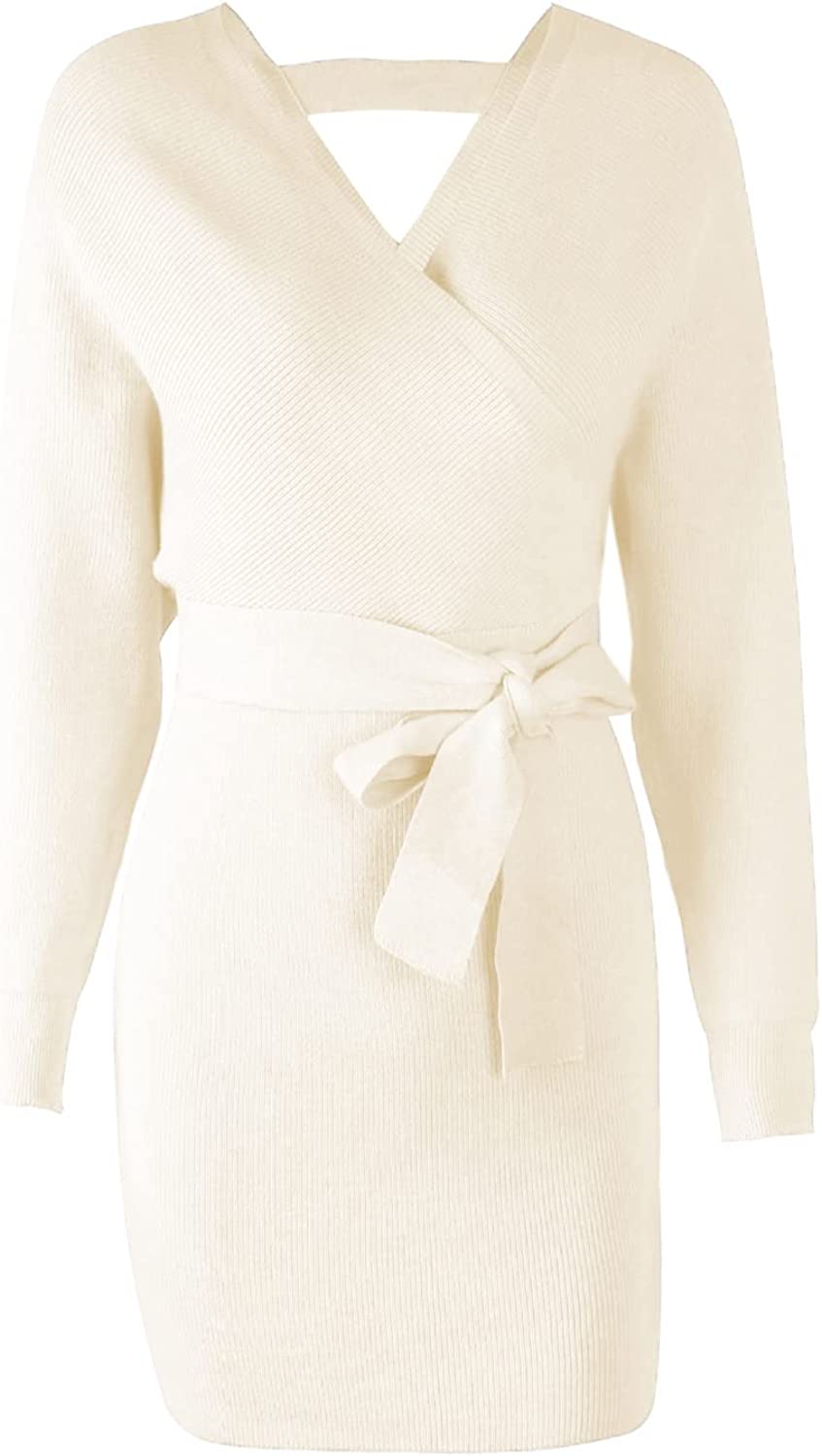 • Long sleeve dresses for women features self-tie waist and mini length, cute and sexy sweater dresses, V neck with batwing sweaters and wrap dress design, ladies and feminine style, suit as a semi formal dresses