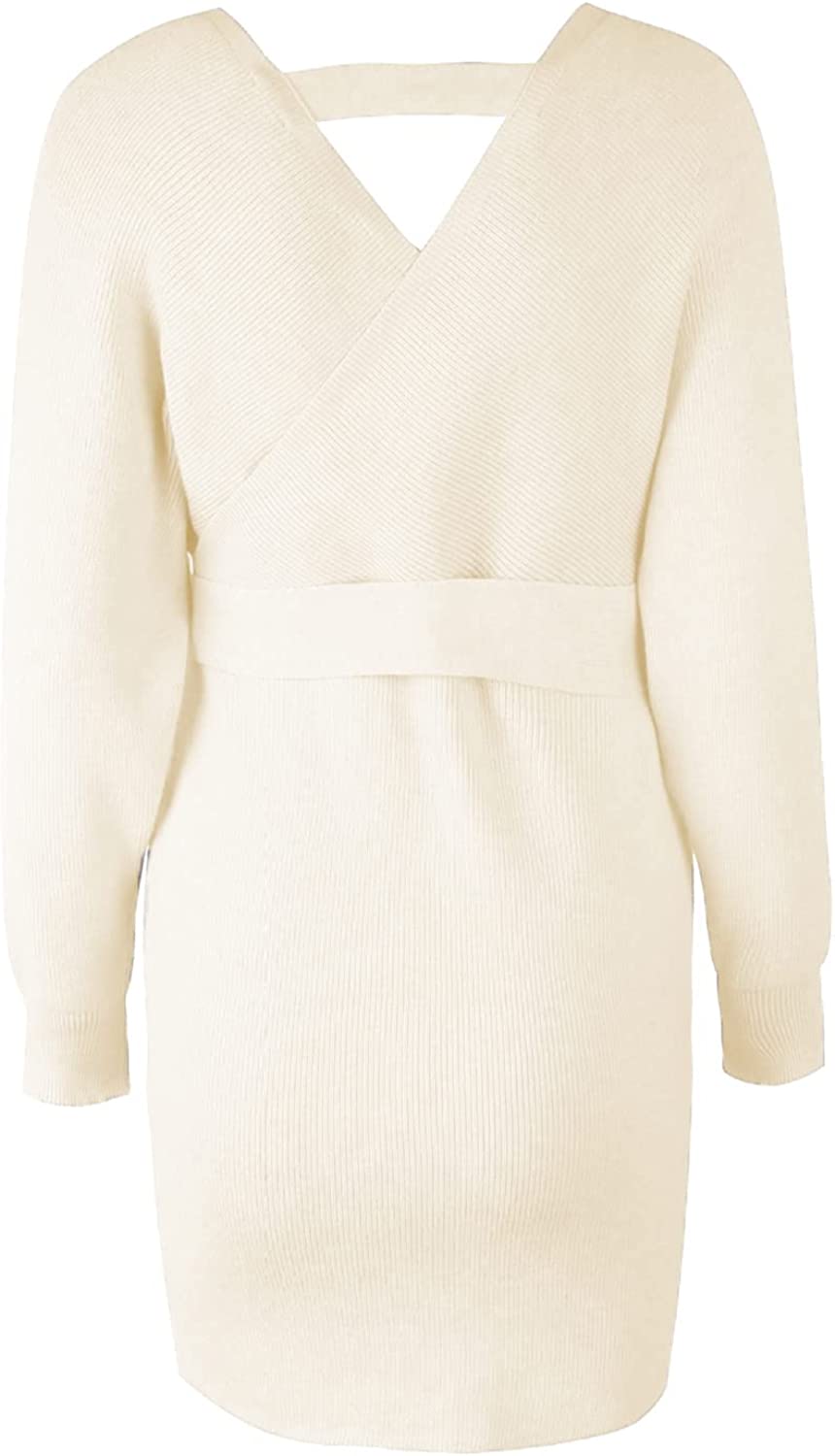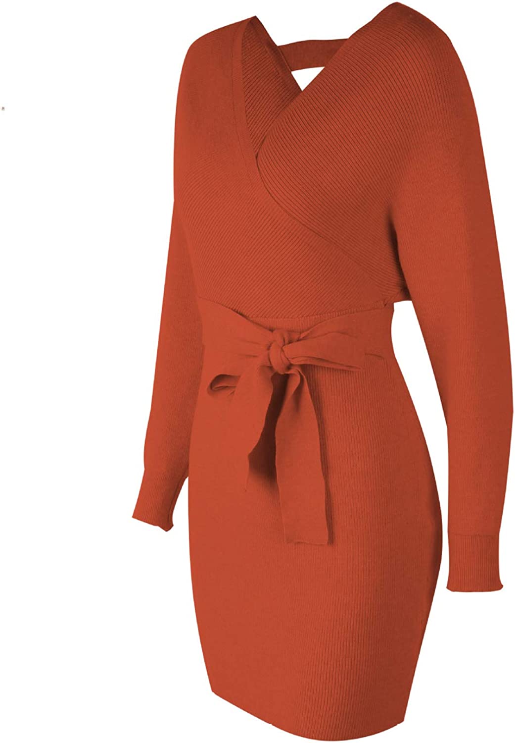 Mansy Women's Sexy Cocktail Batwing Long Sleeve Backless Mock Wrap Knit Sweater Mini Dress