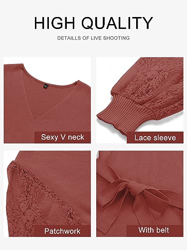 • Feature: Lace lantern long sleeves, sexy wrap v neck, solid color, high waist, detachable waist belt, midi length, slim fit, elegant knit dress for women.