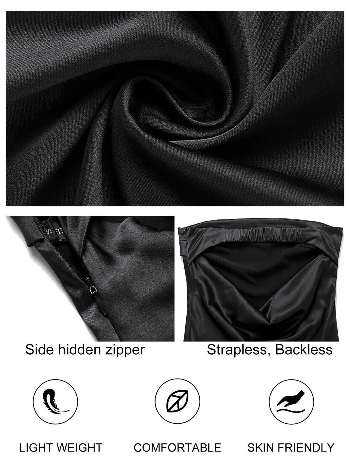 • Features: Solid color, strapless, backless, tube top maxi dress, cutout low back with a folded elastic band, a line, side hidden zipper, double lined in light color, silky, fashionable bodycon party dress.