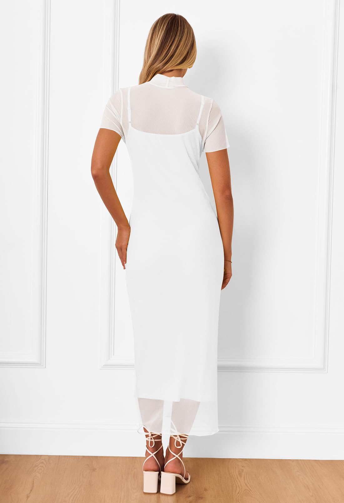 • Feature: Sheer mesh cover up and spaghetti strap dress, v neck, bodycon slip dress, mock neck, short sleeve, soft stretch fabric, slim fit, maxi length, solid color, dresses for women 2024.