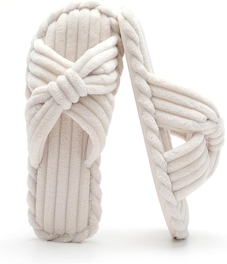Cozyfurry Womens Slippers House Memory Foam Corduroy Flats Bow Crossbands Open Toe Slide Bedroom Slipper Comfy Trendy Gift Shoes