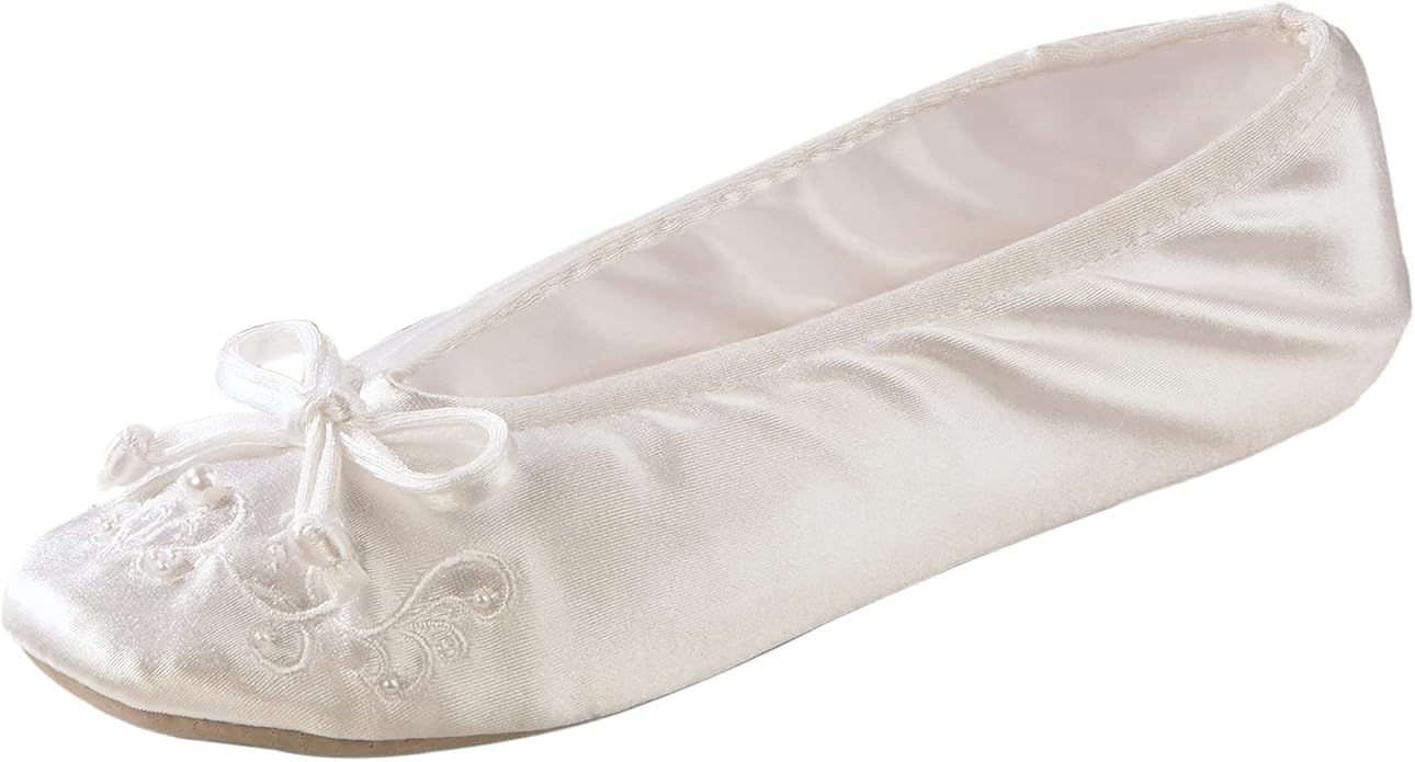 isotoner Women's Satin Ballerina Slippers with Embroidered Pearl