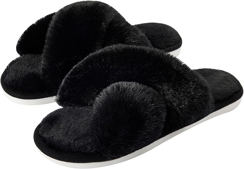 Metog Women's Fuzzy Slippers House Slippers Cross Band Slippers Indoor Outdoor Soft Open Toe Slippers