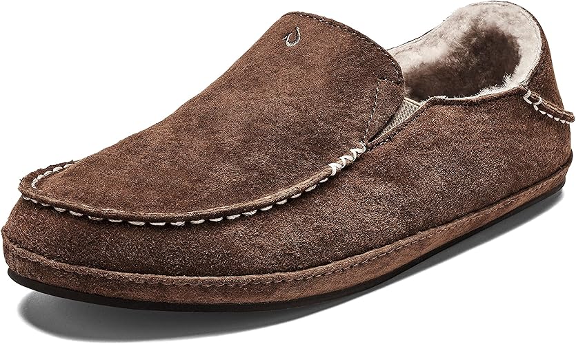 OLUKAI Nohea Slipper, Women's Slip-On Shoes, Genuine Shearling & Premium Nubuck Leather, Drop-In Heel Design, Cozy & Ultra-Soft Comfort Fit
