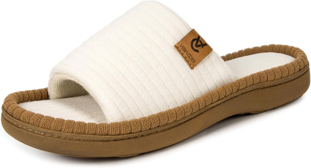 VeraCosy Women's Open Toe Slippers Soft Terry Cloth Indoor Slip on House Shoes