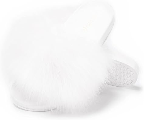Women's Furry Slides Faux Fur Slides Fuzzy Slippers Fluffy Sandals Outdoor Indoor