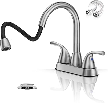 Phiestina Pull Down Sprayer Brushed Nickel Bathroom Faucet, 4 Inch 3 Hole Centerset Pull Out Stainless Steel Bathroom Sink Faucet´_‘with 360 Swivel Spout, Metal Pop-Up Drain, BF04007-B11-GBN