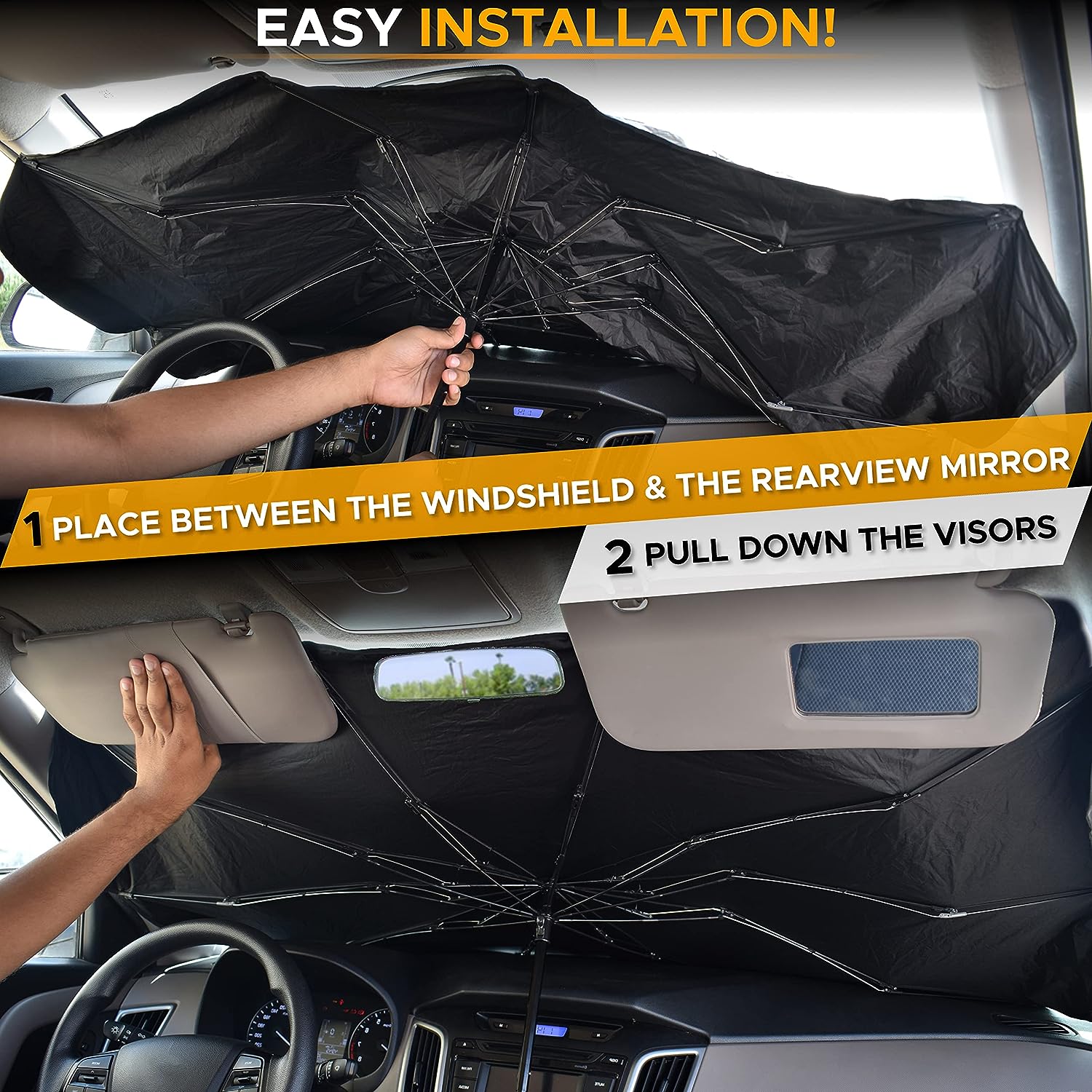 • Designed for Longevity: Our Windshield sun shade features Titanium Silver Glue Coating providing tremendous protection against the sun's heat! Our shades are made from ten-stable toughened steel rods, ensuring superior durability!