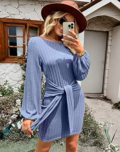 • Elegant High Waist Tie Front Belt Pullover Sweater Dress: The long sleeve cocktail mini dress features with high waist and tie waist design, which helps to hide the belly and arms and also makes this pullover sweater dress more trendy and unique. Classic and unique style will never go out of style.