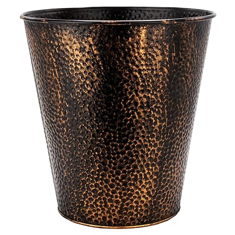 BROOKSTONE, Decorative Metallic Bronze Waste Basket Trash Can - Stylish and Functional Addition to Any Room