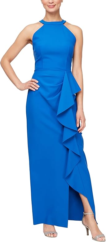 Alex Evenings Women's Long Sheath Slimming Stretch Halter Neck Gown, Dress for Wedding Guest, Prom, Formal Event