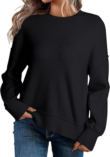 Dokotoo Women's Sweaters Crewneck Easy Street Pullover Long Sleeve Knit Fall Winter Pullover Jumper Tops