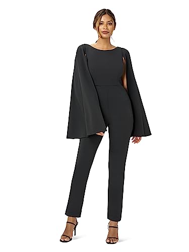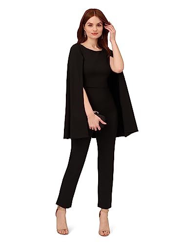 Adrianna Papell Women's Knit Crepe Cape Jumpsuit, Black, 10