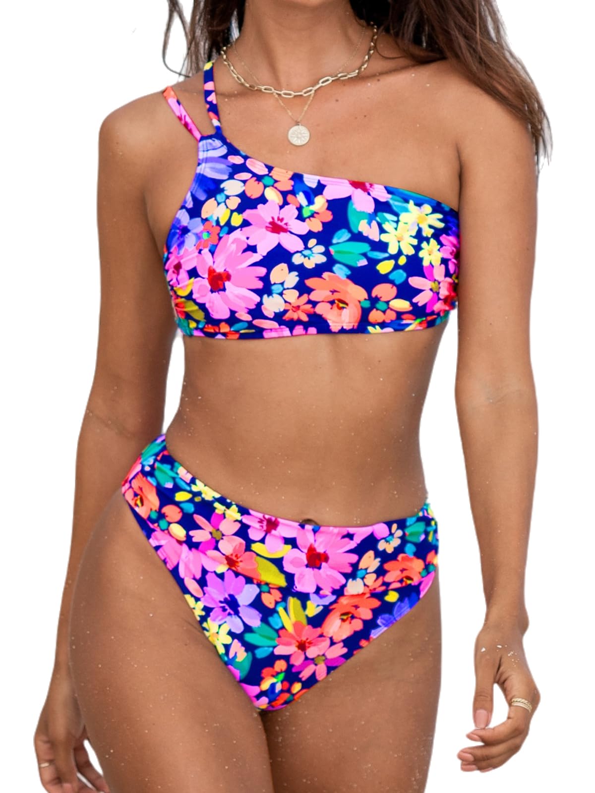 • Design: This asymmetrical neck one shoulder ruched bikini sets designed for comfort and versatility. This chic high waisted two piece swimsuit ensemble features cheeky bottom and cut out design make you looks flattering. About cup style: with soft removable cups.