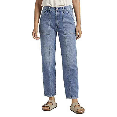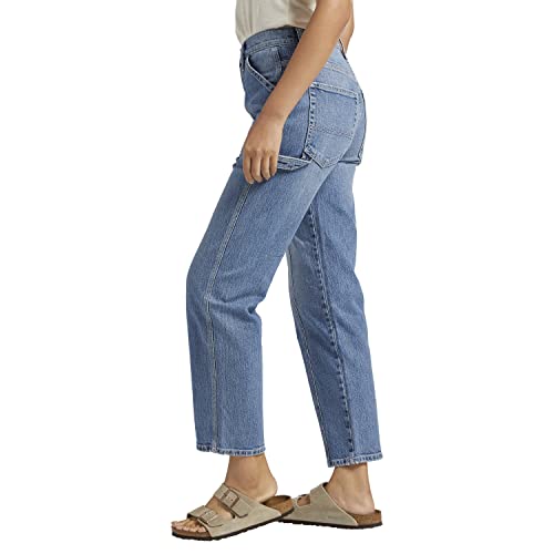 Silver Jeans Co. Women's High Rise Straight Leg Carpenter Jeans, Med Wash RCS224, 28W x 29L