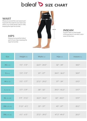 Details: Designed to help you move and stretch with ease, Baleaf Women's High Waist Yoga Capris feature a high, slip-free, tummy-flattening waistband and chafe-free flatlock seam. FIT & SIZING: - Fitted, High-rise - Fits next to skin, sits at the waist - Inseam: 22" (Size S) DETAILS: High Waisted Tummy Control Yoga Workout Capris Side Pockets - High-rise, wide waistband for no muffin top and maximum coverage while bending and stretching - Pockets: 2 side pockets & 1 internal waistband pocket for your convience - Gusseted crotch for greater freedom of movement - Perfect for yoga, pilates, workout, running, jogging, walking, GYM fitness, any type of exercise, or lounging at home MATERIALS & CARE: - Solid Color: Nylon/ Spandex, Charcoal: Cotton/ Polyster/ Spandex - WICKING. Moisture-wicking fabric keeps you dry during your most intense workout - Non see-through. - IT FEELS: Soft, lightweight, breathable and live-in comfortable - Machine wash - If you prefer a "Loose Fit", please order one SIZE UP than you normally wear Stay comfortable and relaxed during any time of the day with the Baleaf Power Flex Yoga Capris.