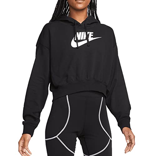 Nike Sportswear Club Fleece Women's Oversized Crop Graphic Hoodie Size - Large Black/White