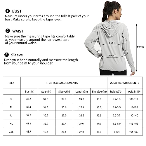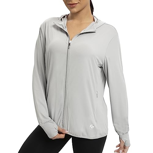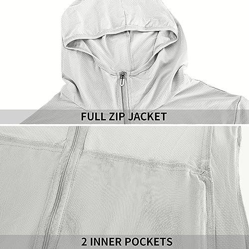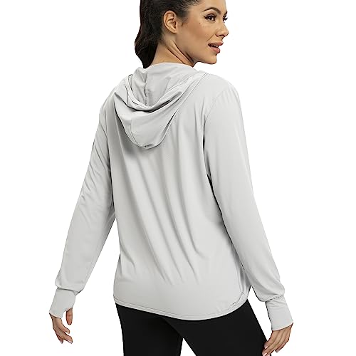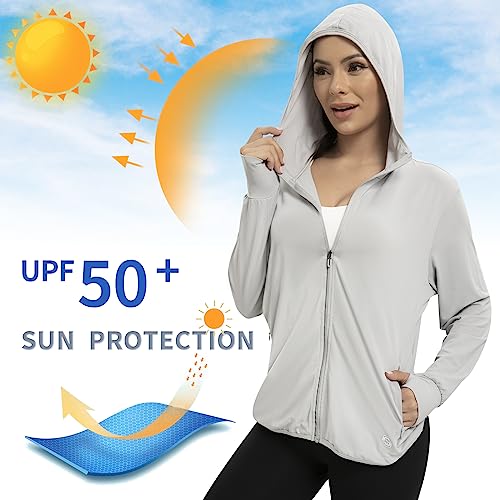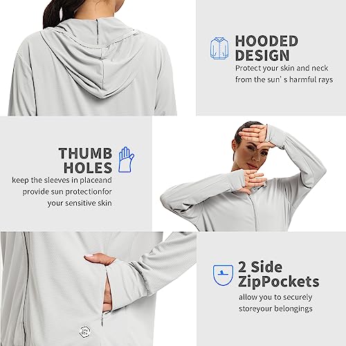 Womens UPF 50+ UV Protection Hoodie Jacket, Lightweight Zip Up Long Sleeve Sun Shirt with Pockets for Running Hiking (Medium) Grey