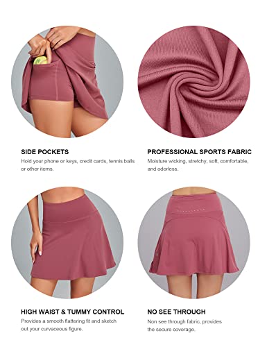 1a1a Women’s Golf Skirts with Elastic Inner Shorts 3 Pockets High Waist Ash Rose Small